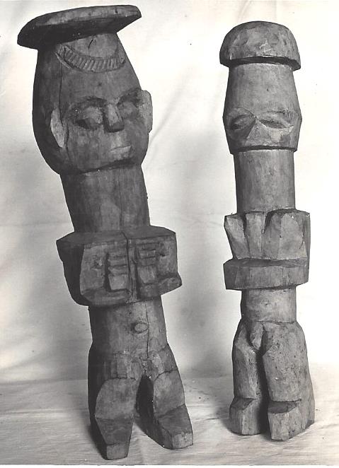I read in one of the very early publications on the Igbo that the Uli area had poorly developed traditions of wood carving. In 1964, it was very difficult to find any Uli carvers, but with the help of one of the Chief's sons, a student of mine, he was able to find a divination set for me, but I don't remember meeting the carver. Its design is simple, and its execution is of lower quality. It makes me doubt that these very large figures were carved by any local Uli carver. I am almost certain that they had been obtained years ago from some outside source.