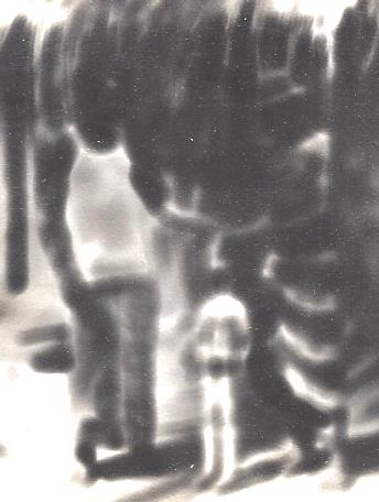 What I wasn't prepared for was the sudden appearance of a man out of breath and highly agitated before me. His eyes circled around and around in their sockets. Oh, Oh! I could be in trouble here! He came straight up to me and pressed his bearded face right up against my bearded face. Eyeball to eyeball. I got the full power of his stare. Then I felt his hand slowly climbing up my shirt front and into my red beard, and he gave my beard a good feel. All the while, our eyes were locked together, nose to nose.