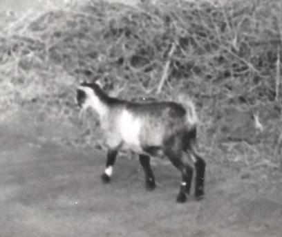 West African dwarf goats are short, stocky little critters and wander all over the place. They climb and prance and chew and scatter about. They are not the tan, long-legged goats with long floppy ears that the Hausa people sometimes bring down from the north, the Nubian goats that resemble an Irish Setter dog but with tan coats. Nope. These goats in Igboland are sturdy, vigorous little animals. The ones pregnant with twins (most commonly) carry an unborn kid on each side of their bellies, looking like side saddles on a roller skate. A typical such goat is pictured here.