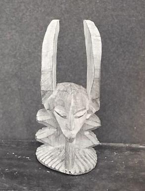 Then, I thought it would be important to get more specific about my expectations to head off any future differences of opinion. Some carvers had delivered masks I had ordered painted with modern enamel paint. I wanted the old traditional paint only. That was O.K. with him. Some pieces had shown up finished with all kinds of goofy things painted on them. Once, a different carver told me he was trying to please by making it pretty in the eyes of the white people. The carver had seen some chintz patterns on some British kitchen curtains and concluded that that was the white man's aesthetic. And so that carver put his recollection (as best he could) of such designs on the mask where they didn't belong!
