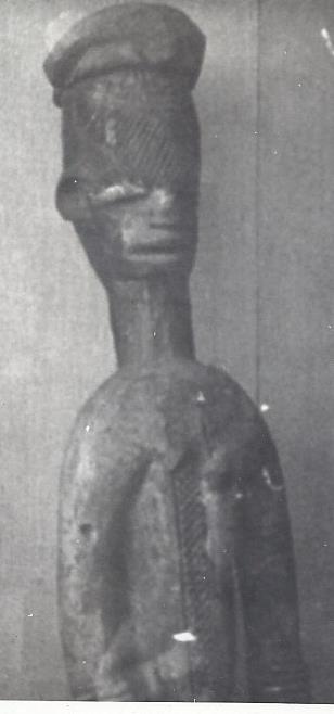 Other pieces are the ones shown here, photographed at the National Museum Lagos in 1964, and two views of a female figure photographed at the Detroit Art Institute in February 1971. A similar female piece is shown in the Gallery on Page 11, Item 301, from the Awka area. The two-colored pictures were taken in David Ackley's studio, Ann Arbor, in the 1960s and show a style prominent in SE Igboland.