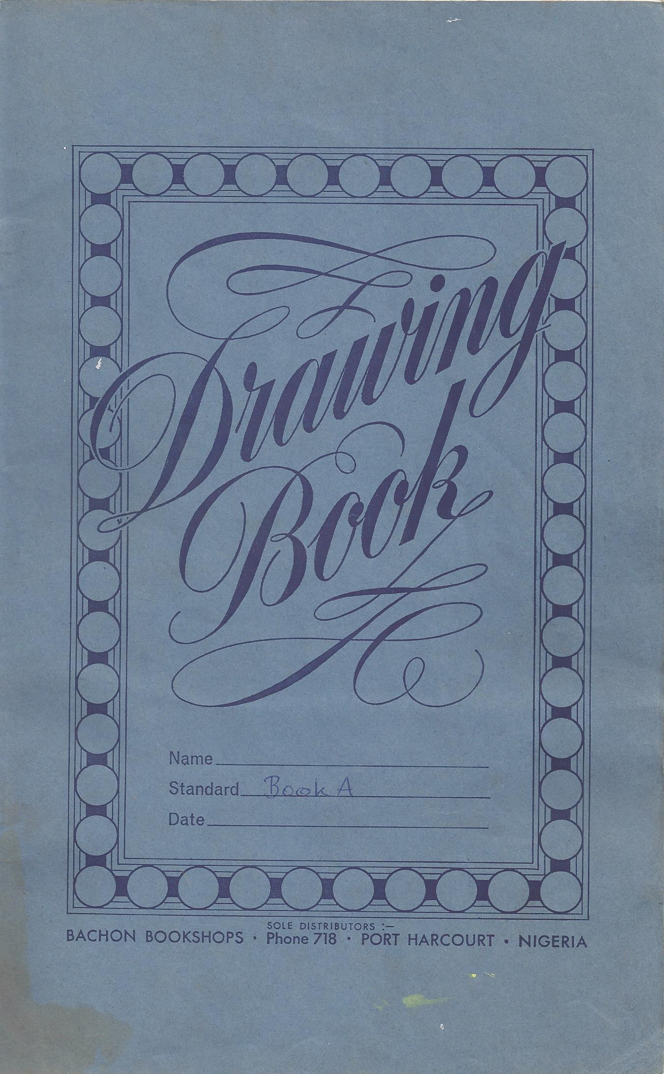 These paintings were made on the pages of three schoolboy copybooks. They measure 7” x 11”. There are ten pages per copybook. Altogether, there are 30 paintings. As part of its history, I scanned the front and back covers of the copybooks, which came from Port Harcourt.