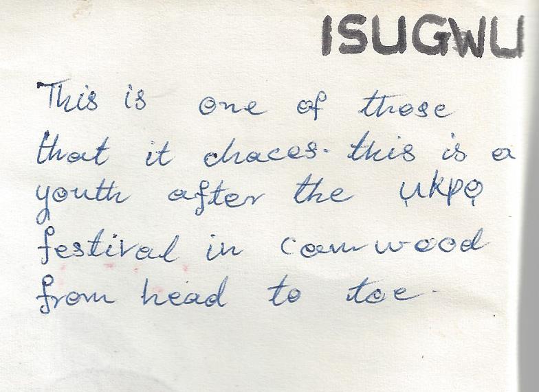 One day, while I was visiting Afikpo, I met another PCV (not Jack) who shared with me some charming watercolor paintings of flowers. I was enchanted and asked to meet the artist. He turned out to be a teenager who had been educated through elementary school, so his English (Nigerian English) was understandable and his handwriting legible.