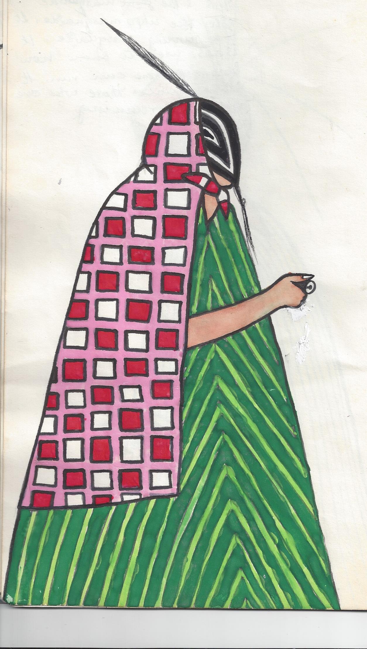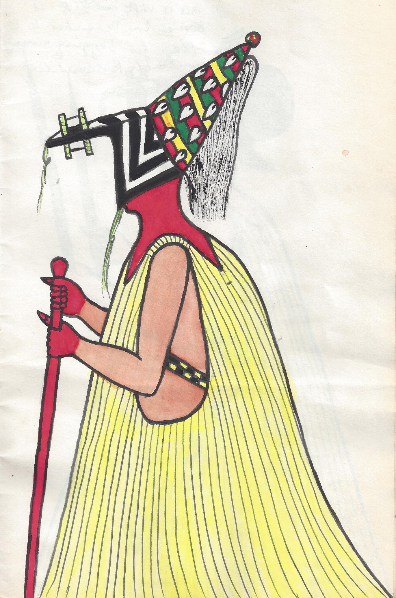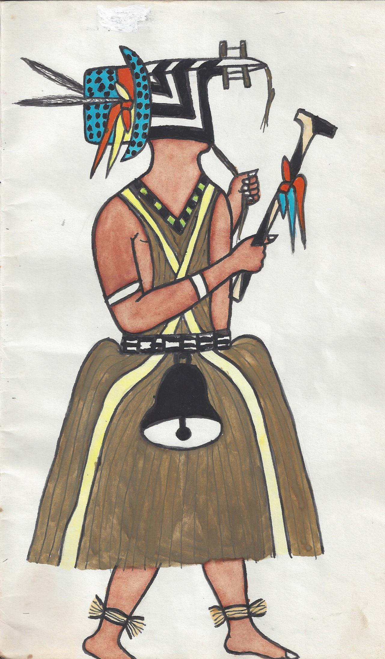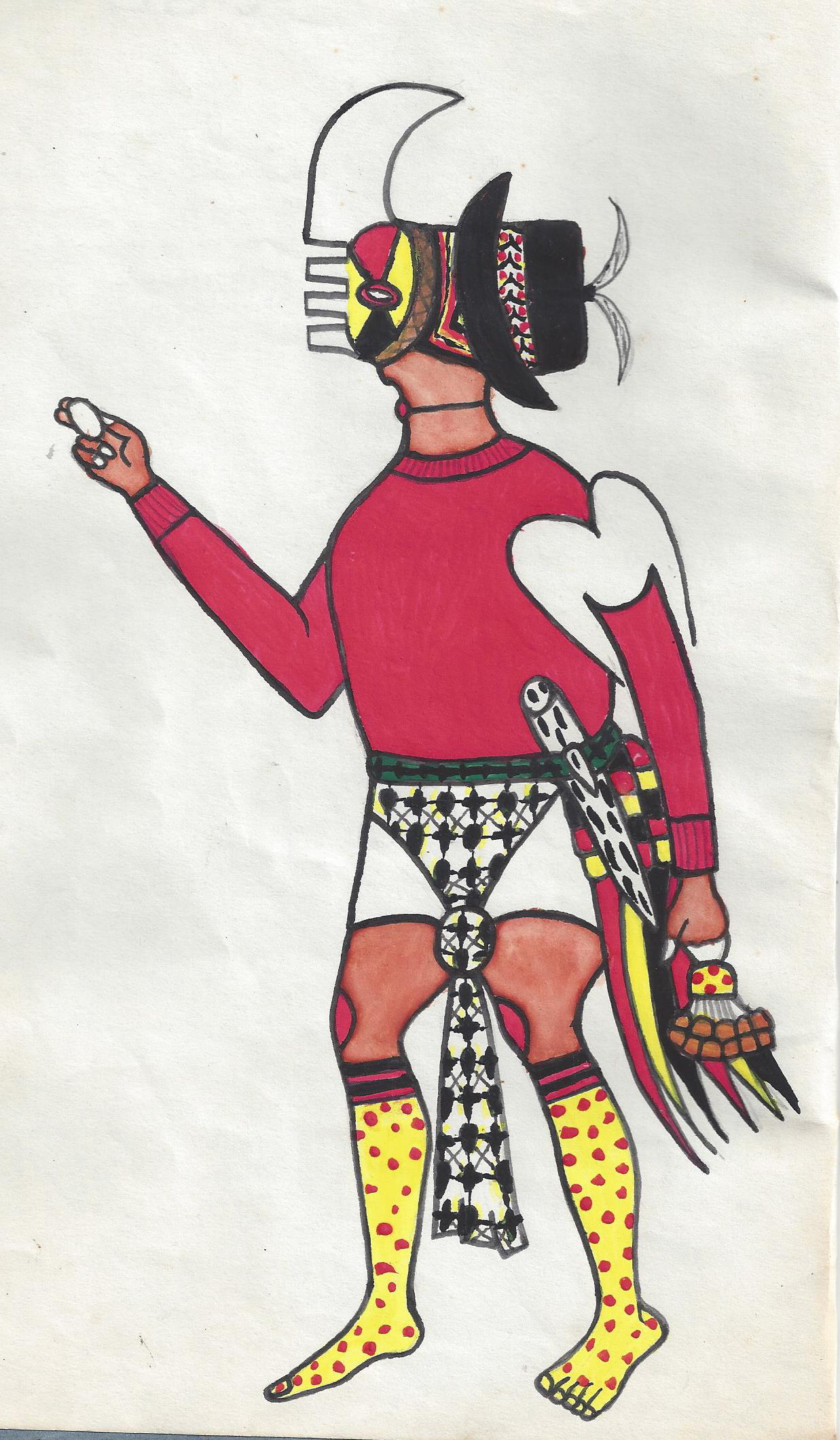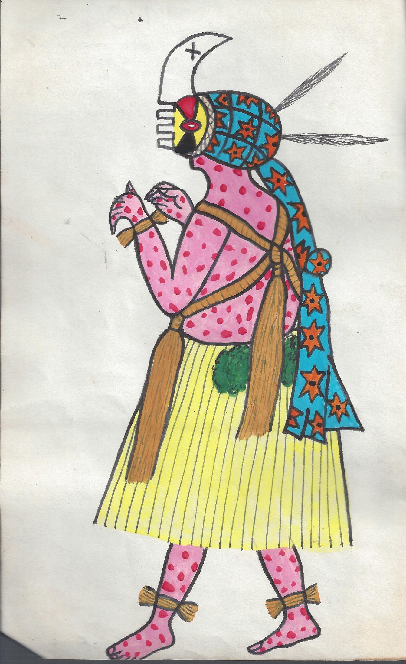 Together, we turned the pages one by one, and they were delighted. They encouraged me to do something more with them, so, as a beginning, I am sharing them on this website, Chapter Four. For 59 years, these paintings have been unseen otherwise, stored with my masks and statues in Bay City, Michigan.